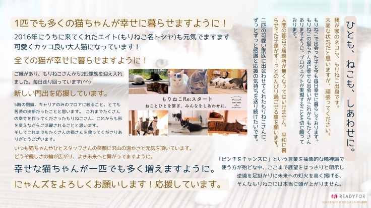 皆様からのたくさんの応援を力に「もりねこ Re:スタート」を歩み始める大きな一歩となりました!