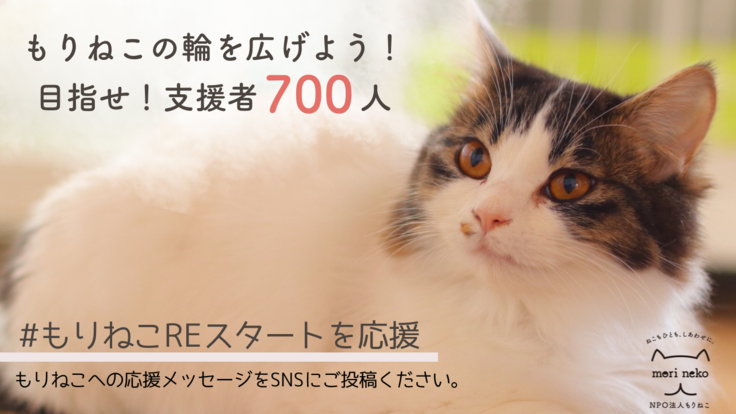プロジェクトも終了まであと4日というところですが、今回のプロジェクトを通じて、もりねこの輪を広げ、より多くの人と一緒に「ねこもひとも、しあわせに。」の社会を実現したいと思っています。