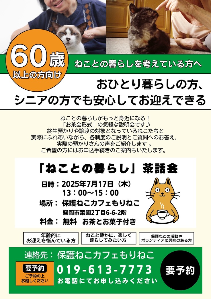 もりねこでは、スペシャリティーさんを対象に『終生預かりボランティア』として