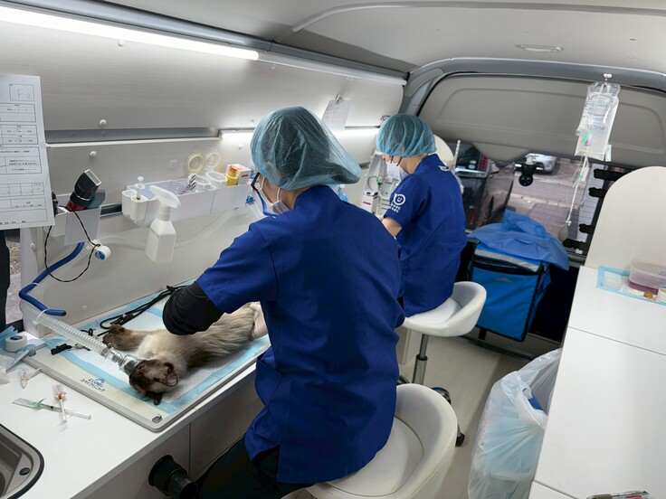 手術は「ニコワゴン」という特別な手術設備を備えた車両内で行われ、よりスピーディーで低コストな避妊去勢手術の提供を可能にしています。