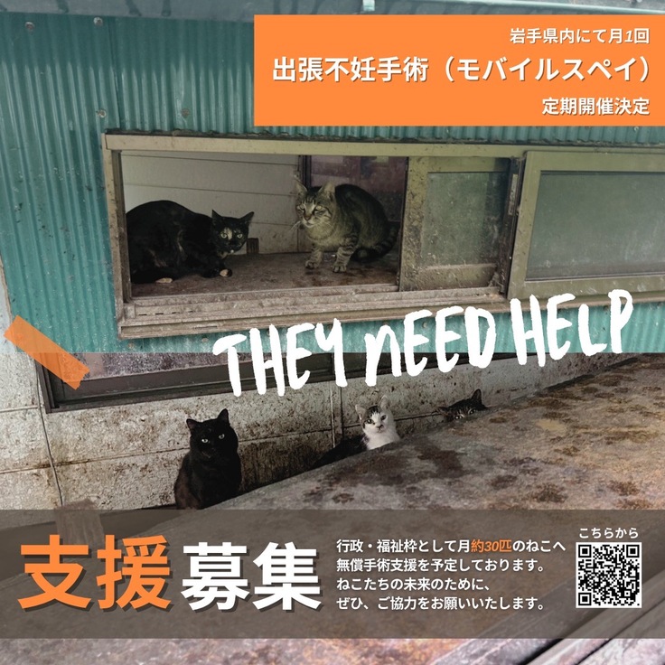 2025年9月より、岐阜県を拠点とするにじのはしスペイクリニック(株式会社NICOX運営)さんと協働し、岩手県内での『モバイルスペイ(移動式不妊去勢手術)』を定期的に実施していきます。