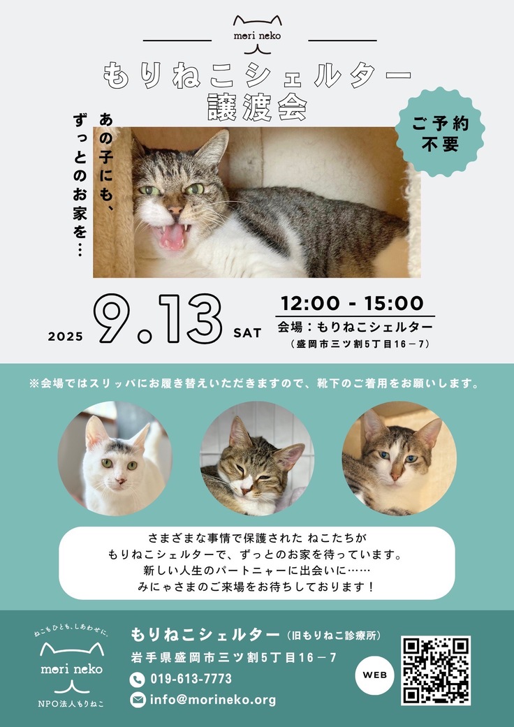 また、9月13日にはシェルターでの譲渡会も開催いたします♪