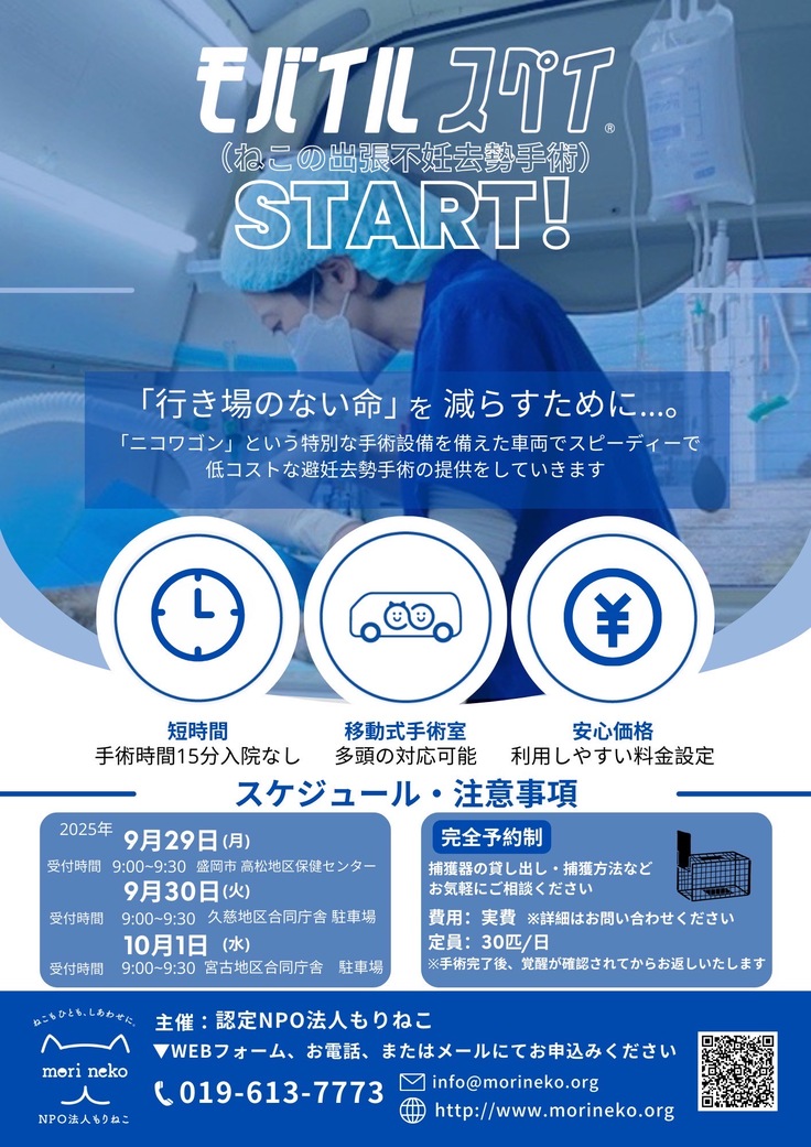 にじのはしスペイクリニックさんにモバイルスペイ(移動式出張手術)を