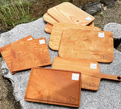水野林業の古殿杉を使って、BBQボードやお皿、カッティングボードとして使うことのできる、水野林業オリジナルの「古殿杉プレート」をつくりました。ほのかに香る杉の香りに癒されます。