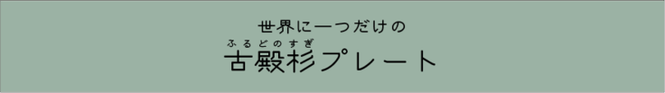 水野林業の古殿杉を使って、木の温もりを感じられる水野林業オリジナルの「古殿杉プレート」をつくりました。ほのかに香る杉の香りに癒されます。