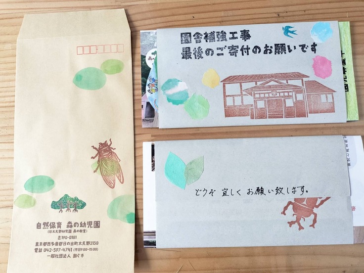 この手紙は、保護者がハンコを掘って一つ一つ丁寧に押して、千切り絵をつけ、手書きの言葉も添えました。