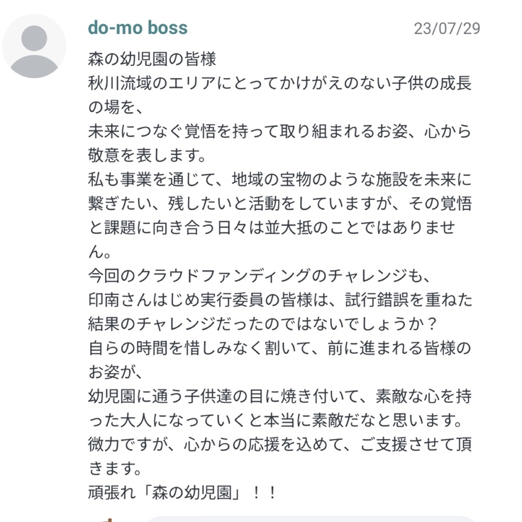 今は、私たちがするべきことはクラウドファンディングを成功させ、いただいたご支援を大切に使いこの場所を残していくことなのだと感じています。
