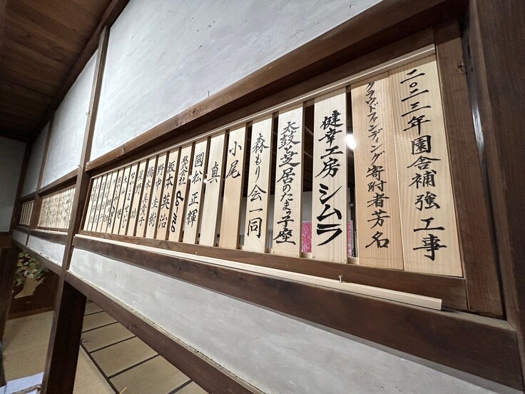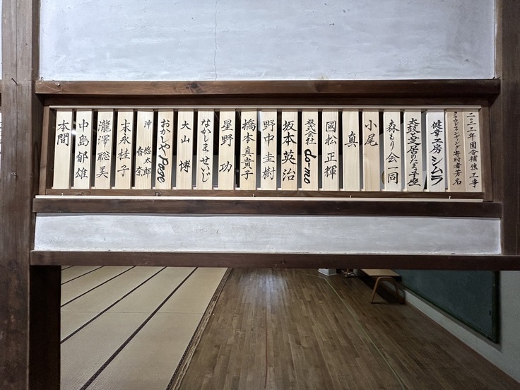 木札はご近所の木材屋さんからのご寄付を頂きました。