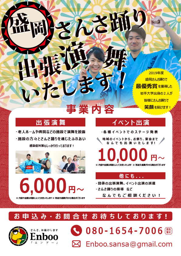 ・盛岡市内での演舞に限定いたします。