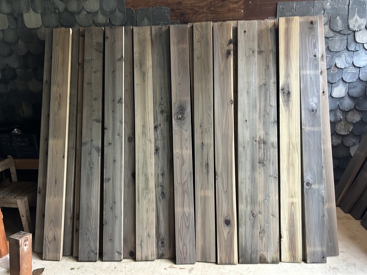 まずは使用する板材、なんと300枚に防腐剤を塗っていく作業へ。