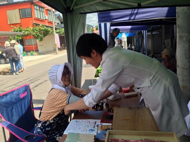 「地域にいる話しやすい医者」になるべく、この町の暮らしをもっと知りたかったわたしは、短期滞在ながら500年以上続く朝市の特別企画「朝市Plus」で血圧測定や健康相談の屋台出店まで!させていただくことができました。