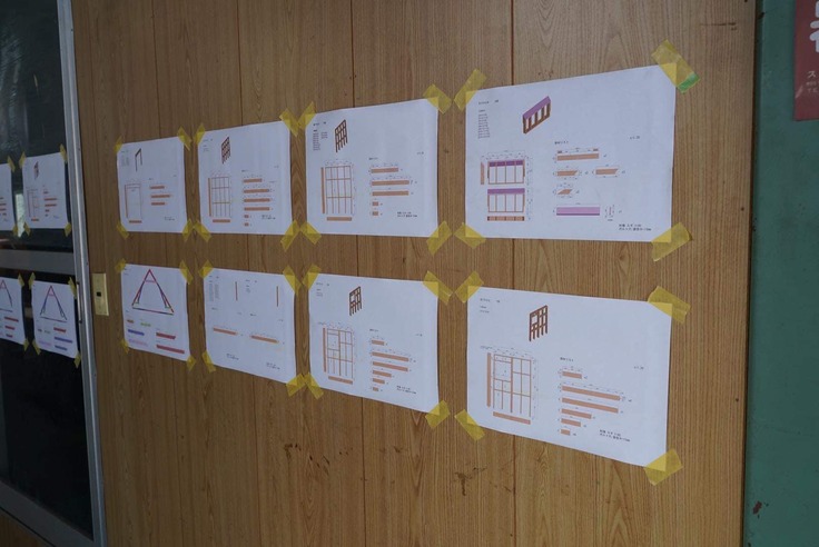 設計データを印刷し、組み立てるものを壁に張り出していきます。