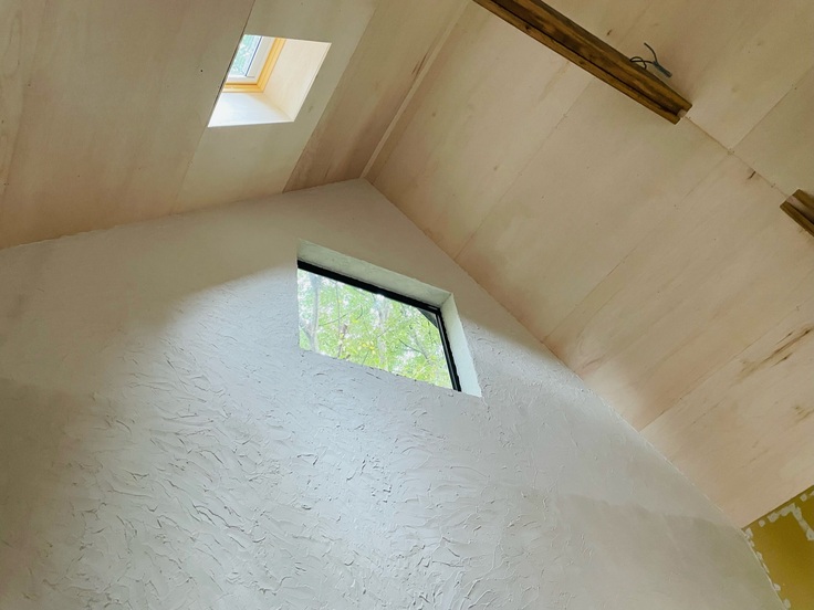 内壁に漆喰を塗り、床に無垢材を張っていきます。