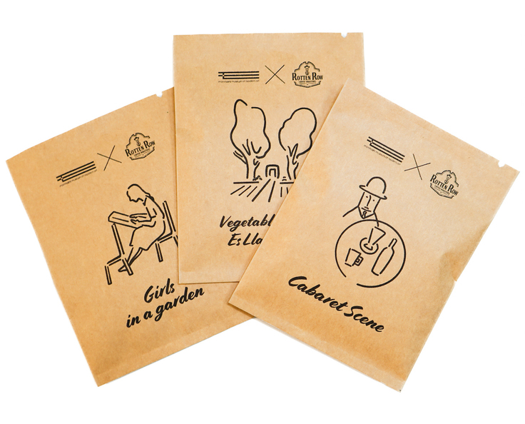 今回のクラウドファンディングでは、この定番の2種類のテイストとはまた異なる、『キャバレーの情景』『庭の少女たち』『リャネの野菜畑』をイメージしたクラウドファンディングオリジナルブレンドをご用意いただきました。