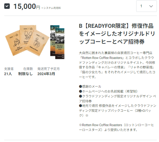 B【READYFOR限定】修復作品をイメージしたオリジナルドリップコーヒーとペア招待券