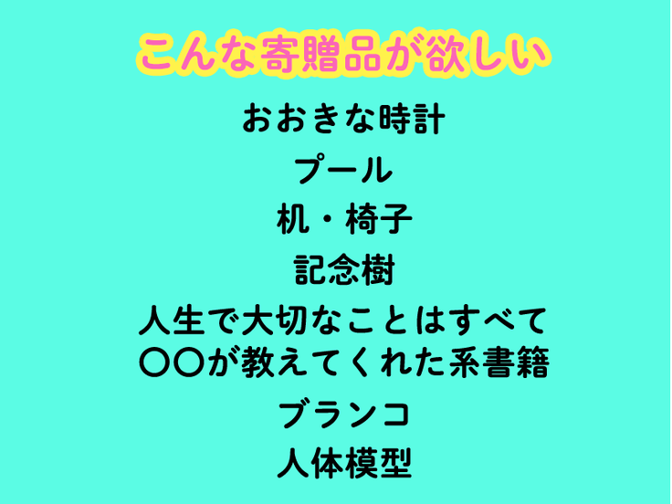 そこで、モテアマス学園もどんな寄贈品が欲しいかを考えてみました。