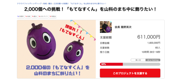 2,000個への挑戦!「もてなすくん」を山科のまち中に飾りたい!