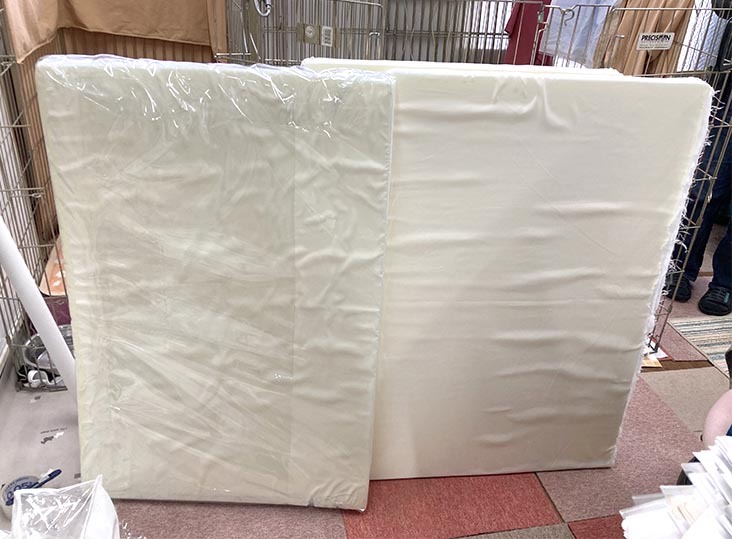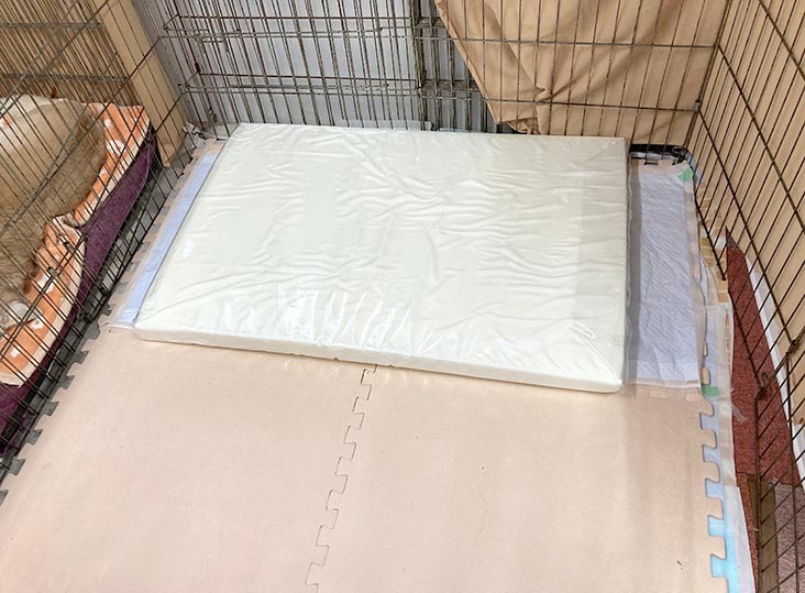急いで低反発のマットレスを用意してサークルの中に敷いてみました。