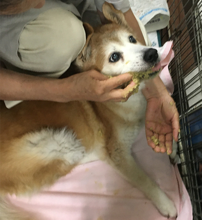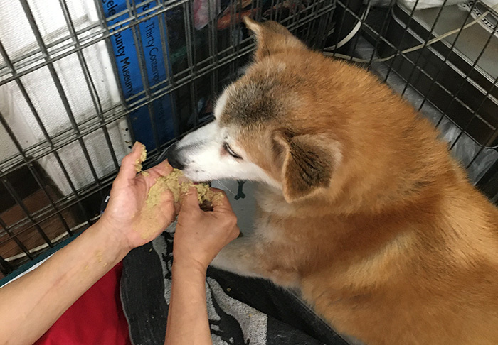 病気の犬は本当に手がかかります。ご飯は自分で食べないので30分以上かけて食べさせていますが、これからまた抗癌治療が始まって、嘔吐したら高栄養のご飯にしなければいけません。「また下痢がひどくならないといいが・・・」と不安な日々です。