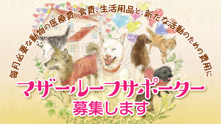 マザールーフは20年ぐらい保護犬・猫の活動を行っていますが、今まで自己負担で行っていました。