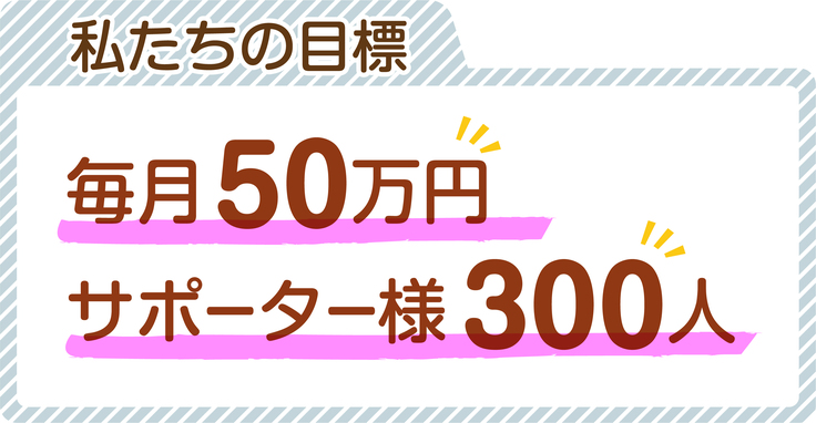 目標は毎月50万円 サポーター様の目標300人です。