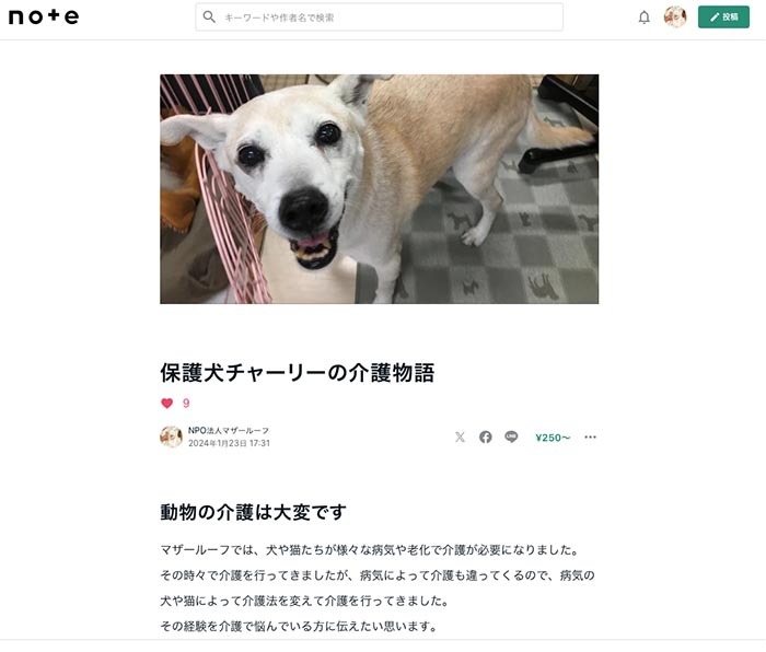 持病を持っていなかったチャーリーが、15歳を過ぎてどんどん介護が必要になっていく様子を文章にしました。