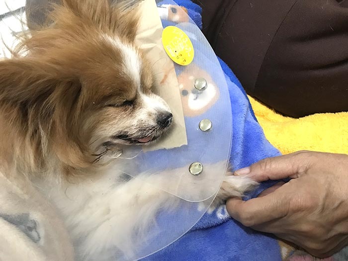 ピーチは小さいし高齢だし、「手術はどこですればいいのか?いつものかかりつけの病院でしたいが明日でも間に合うのか?」と、夜間動物病院が開くまで心配しながら待っていました。