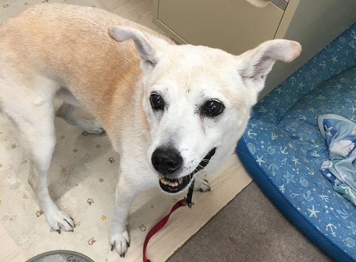 高齢な犬ばかりになったマザールーフは同じくらいの時期に今度は15歳のピーチに大腸の腫瘍が見つかりました。