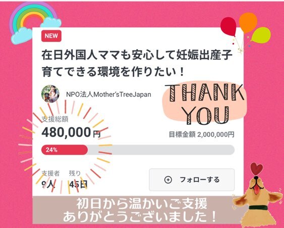 事前に代理申請という形でご支援を託してくださった方々を含めて、ゴールの24%のご支援をいただきました。