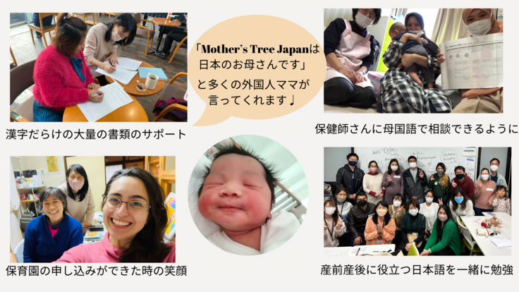 自身の母親が言葉の通じない中で苦労して海外で子育てする姿を見て育った事務局長が、その保育士経験や産前産後セラピストとして多くのお母さんたちをサポートしてきた経験も踏まえて、2020年にNPO法人Mother‘s Tree Japanを立ち上げました。