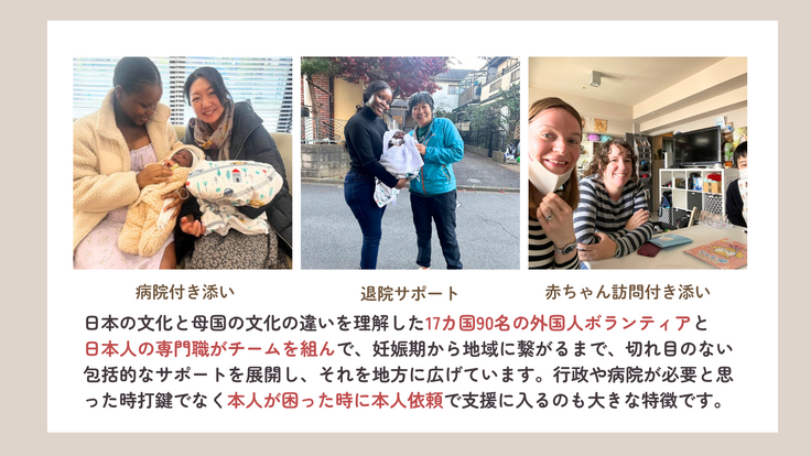 せっかくご縁があってこの国に来た外国人ママたちに、人生の大きなハイライトである「出産」を安心して迎えてほしい。