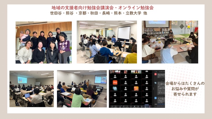 対面での相談会は豊島区の子ども家庭支援センターを中心に開催しています。九州地方や京都、千葉県などでもサロンを開催しています。イラストなどを駆使して説明したり、色々な疑問や質問に専門家が答えたり、お母さん同士で助け合ったりしています。