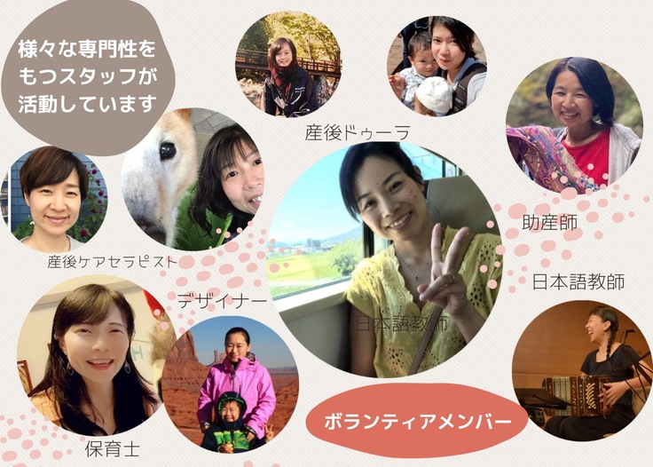 助産師、保育士、産前産後セラピスト、各国の優秀な通訳・翻訳ボランティアさんが集い、在日外国人ママたちの保健所・病院への付き添いや、さまざまな相談事業に取り組んでいます。