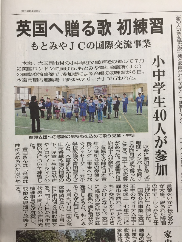 『未来へ繋ぐ合唱団』の声を感謝の想いを込めて英国に届ける!