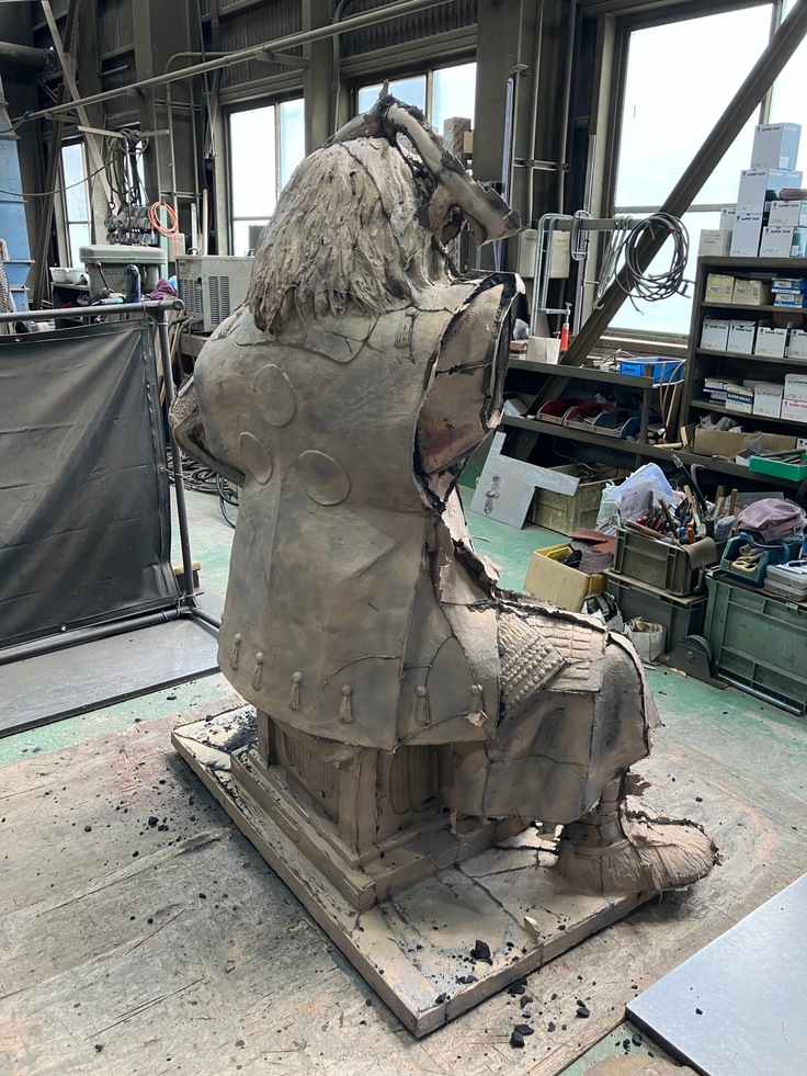 現在元就公の銅像とご支援者様お名前銘板の鋳造作業が終わり、最終工程となる銅像とお名前銘板の磨き作業が始まりました。