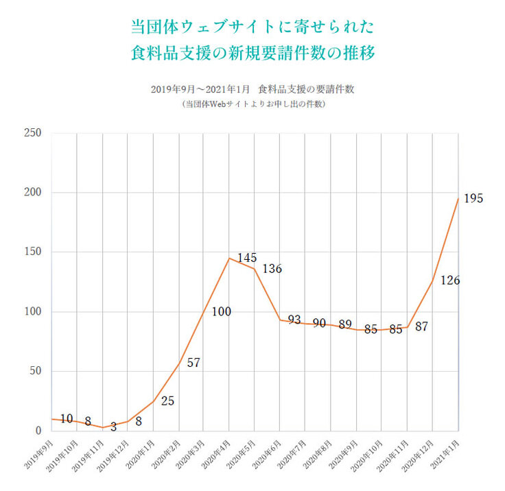 こうしたお声は2019年までは一か月あたりわずか数件程度でした。2020年、ちょうどコロナ禍が始まって急増し、その数は日を追うごとに増加していきました。