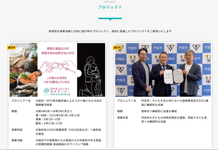 同時に、大阪府下の事業者様からの食品ロスの可能性がある品物の買い取り相談、食品を梱包するボランティアスタッフの方を募集しております。