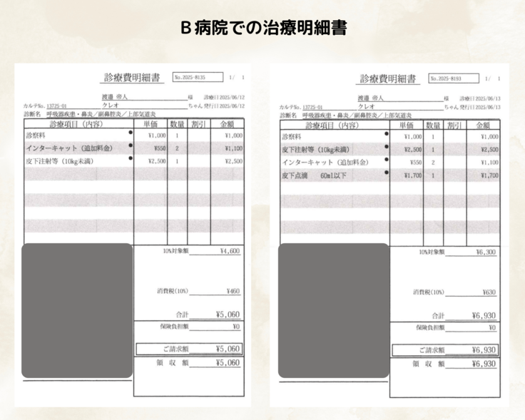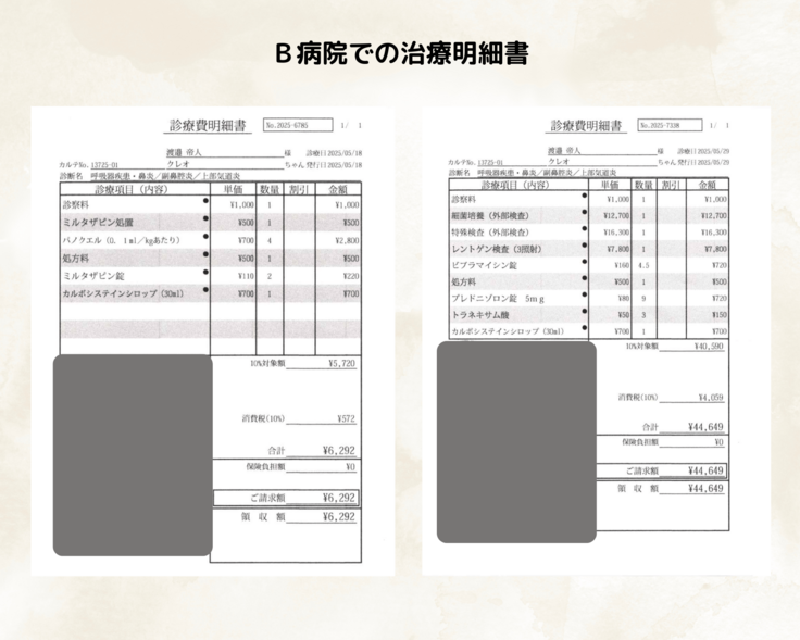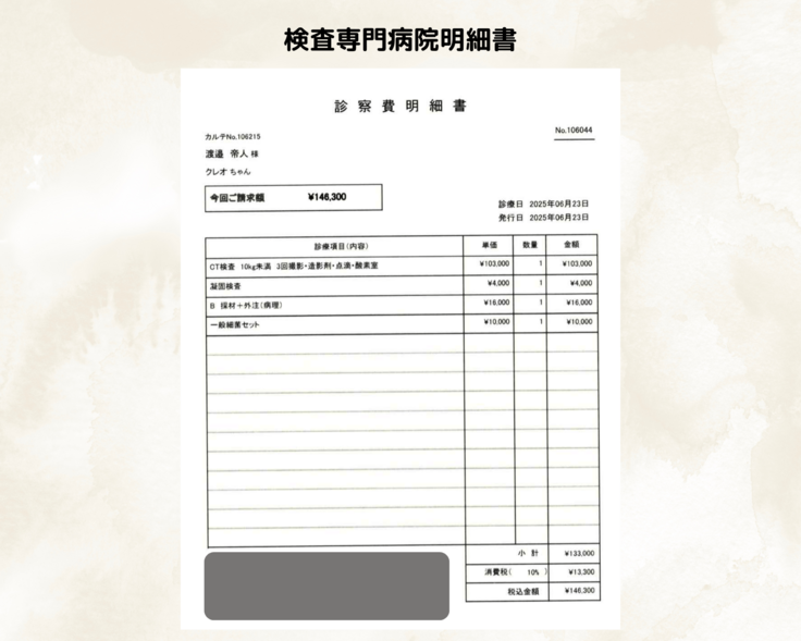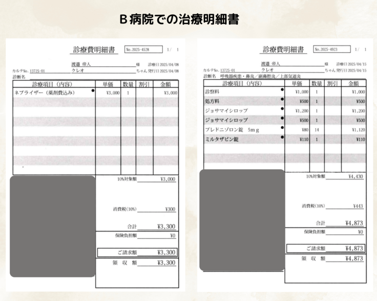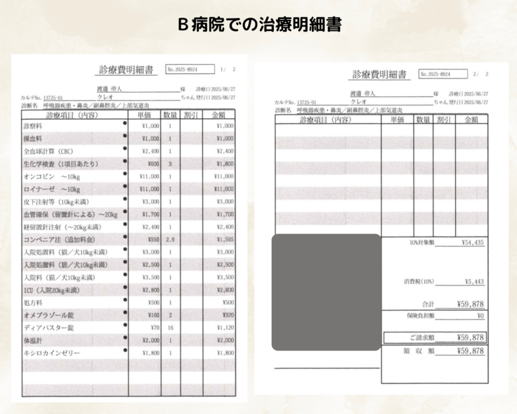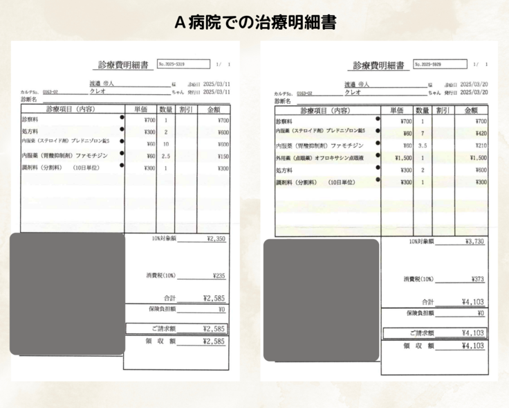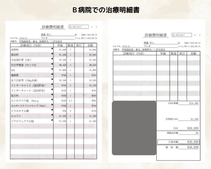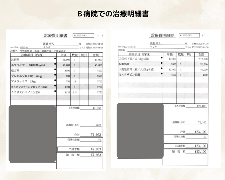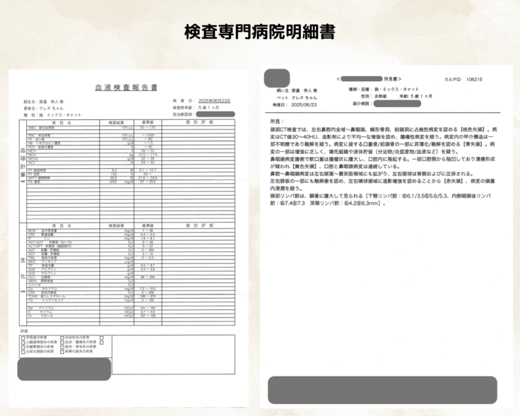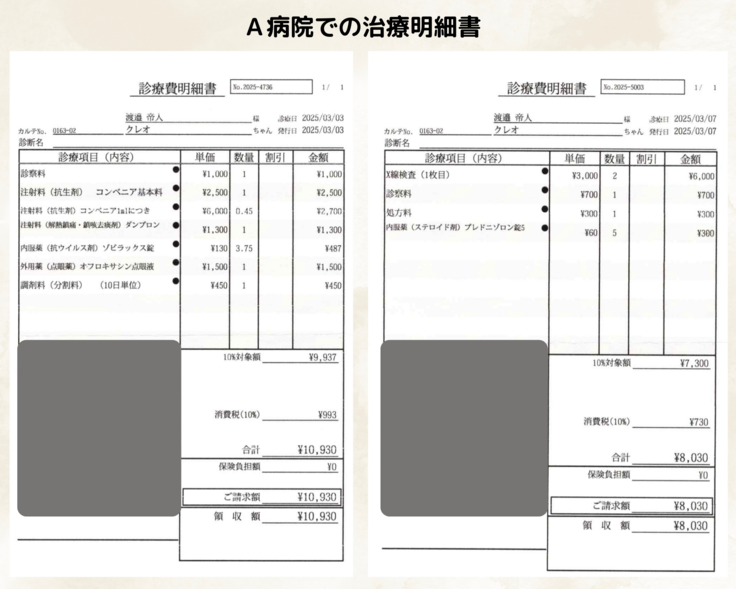 ページ上に掲載している診断書や診療明細書などの資料は全て動物病院から掲載の許諾を得ております。