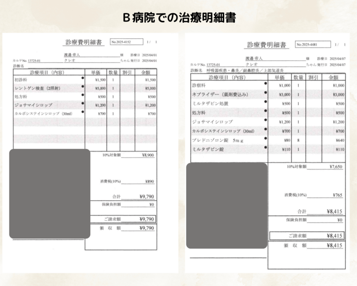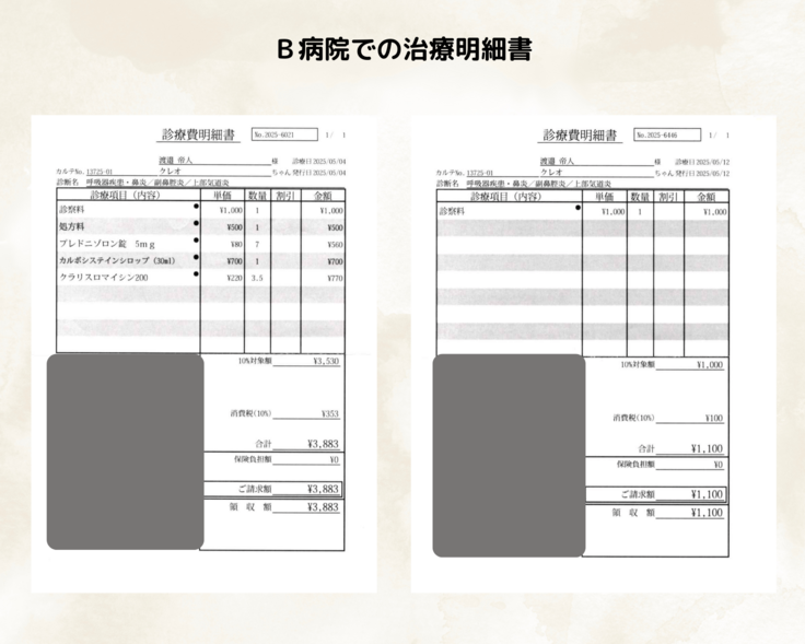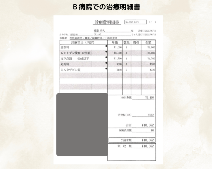 今までの治療費:5.9万円(B病院:過去1回分の抗がん剤治療費)