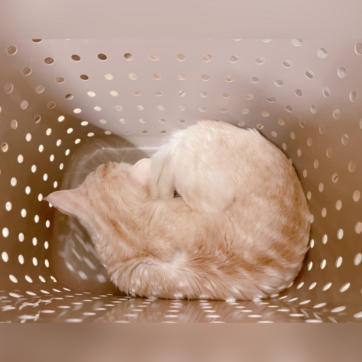 高さ50センチくらいある洗濯籠が気に入ったみたいで、ピョーンっと飛んで中に入ってスヤスヤ寝ていました。