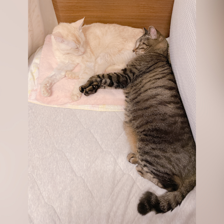 だるそうに寝ている時間が多かった1日でした。上顎にできてる穴から鼻の方へご飯が入ってしまうのか、ゲホゲホしてしまうことが多かったです。でも、頑張ってご飯やチュールは食べてくれました✨