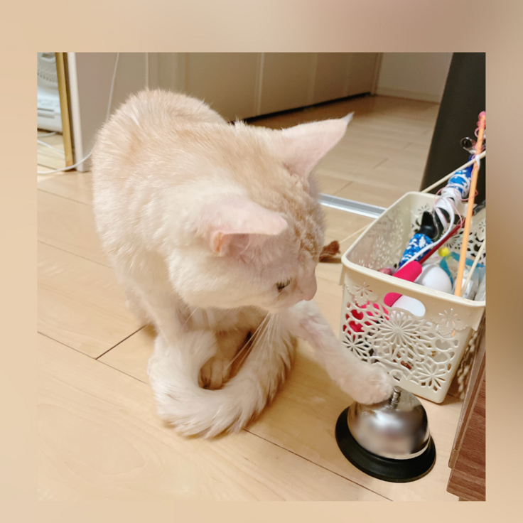 久しぶりに呼び出しベルを設置してみたら、チュールを食べたくなるたびにチンチーンって高速連打をしてくれました✨でも、あまりにも鳴らすので、1日中注文の多いお客様を対応している店員さんみたいでとても楽しかったです。