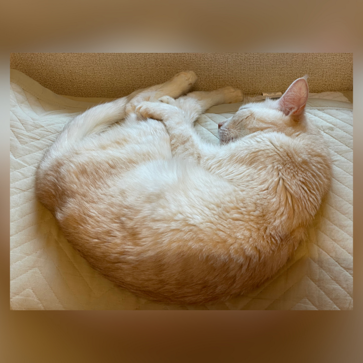たくさんなでなでしたら、満足そうにお気に入りのクッションでぐっすり眠ってくれました。
