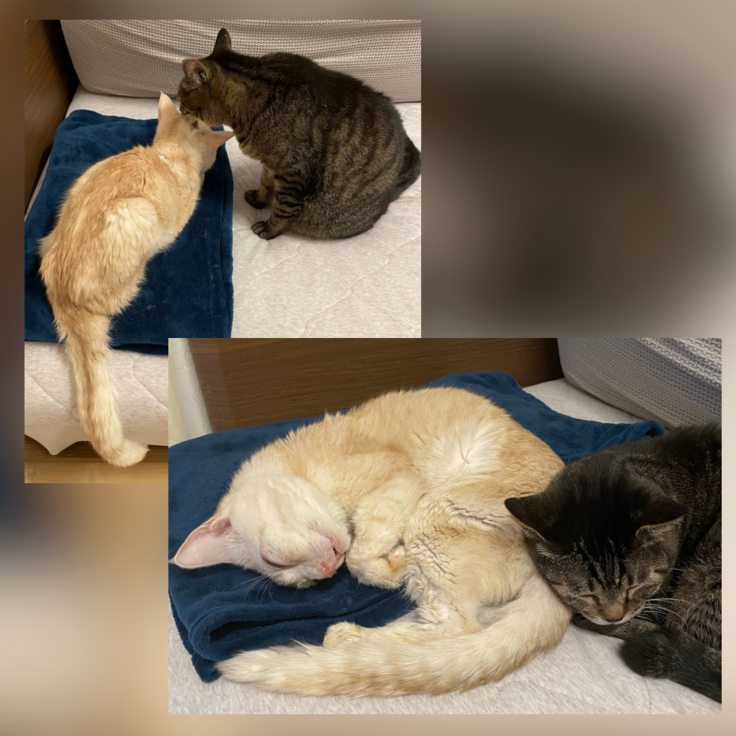 そこにはお兄ちゃん猫のノアがいて、くぅちゃんは隣に寄り添うように眠ってくれました。