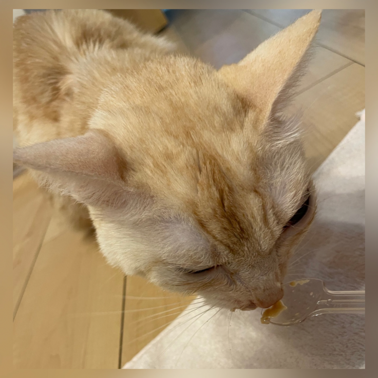 くぅちゃんは、口内の潰瘍もあるため無理やり飲ませて痛い思いはさせたくないので、工夫しながら与える方法を探すことにしました。