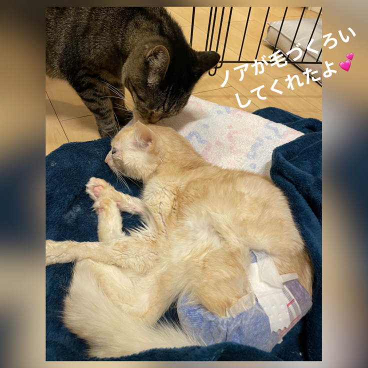 ノア(お兄ちゃん)が優しく毛づくろいしてくれる微笑ましい場面もありました💕