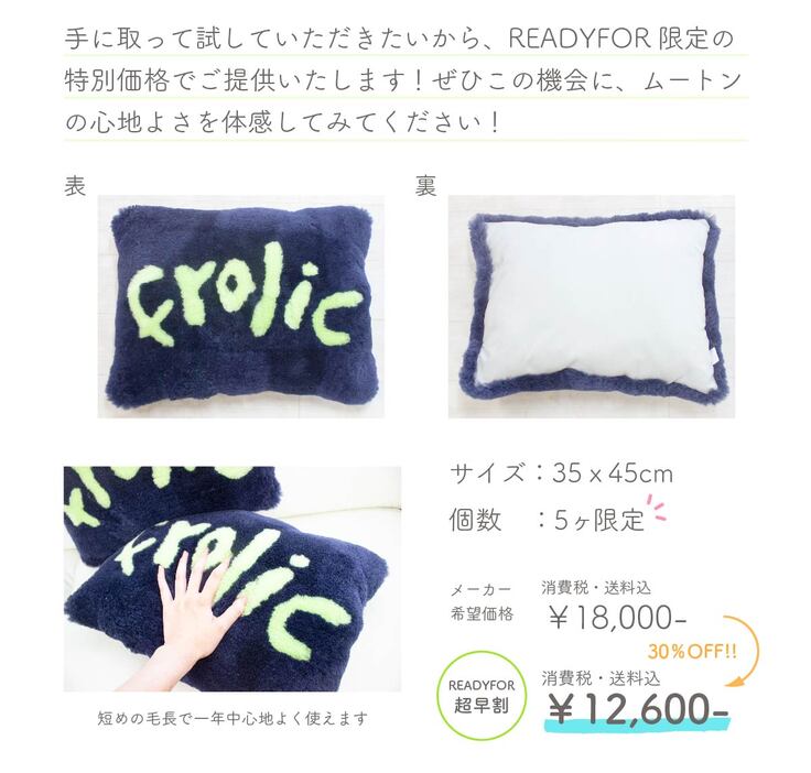 【READYFOR限定】オリジナルロゴ入りクッション【30%OFF!!】