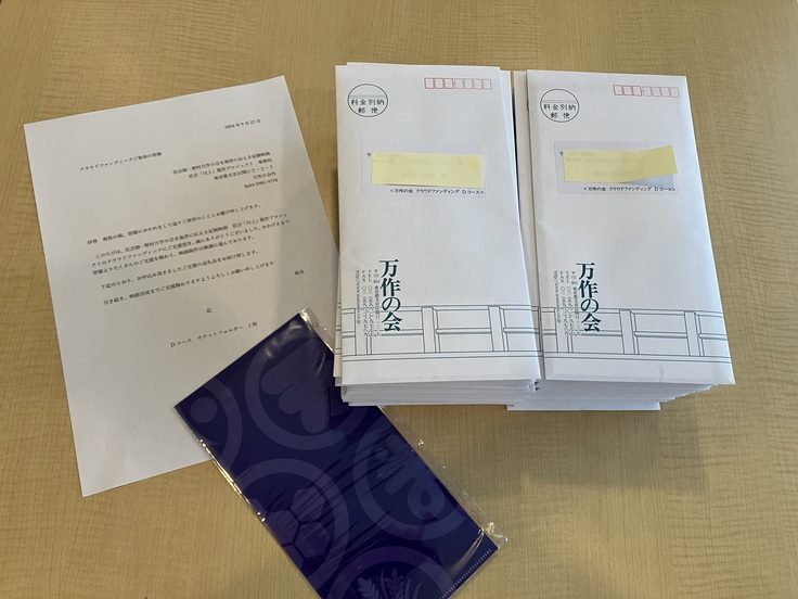 リターン品は、今後も出来上がり次第、順次発送いたします。