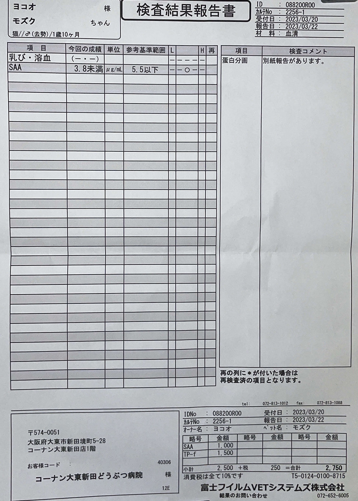 投薬開始から274日目の3月31日、もずくがFIPドライタイプ寛解をしました!