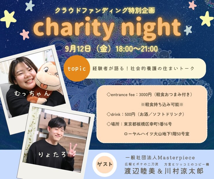 【クラファン特別企画!】9/12(金) Charity nightを開催いたします♪
